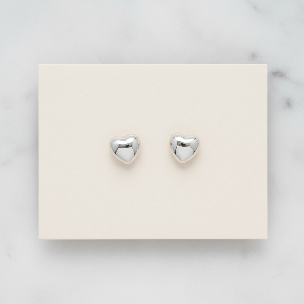ANVIOPRINT Minimal Silver Heart Stud Earrings – Elegant Everyday Love Jewelry