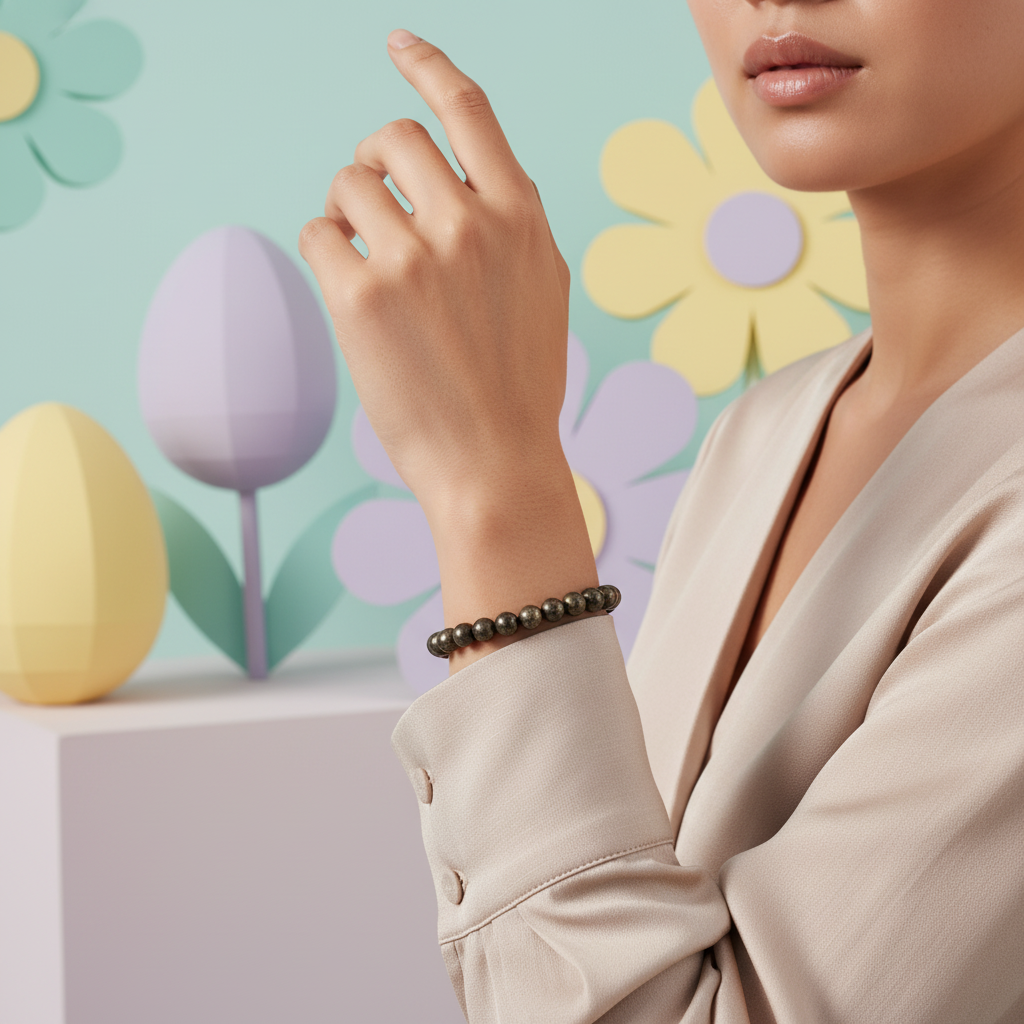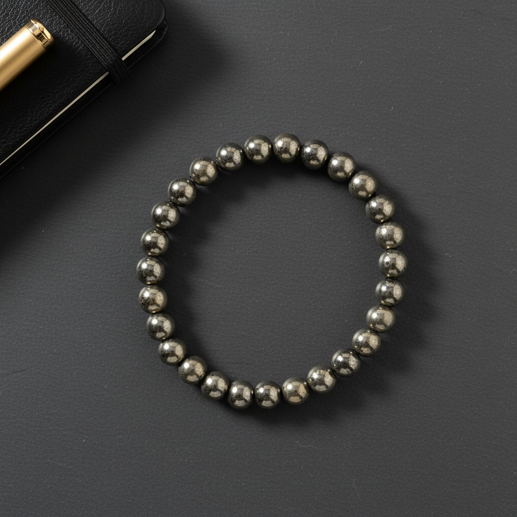 Crafted from genuine raw pyrite crystals, this bracelet carries strong grounding and protection energy. According to Vedic astrology principles, Pyrite supports ambition, discipline, and career stability — making it ideal for entrepreneurs, students, professionals, and business owners.